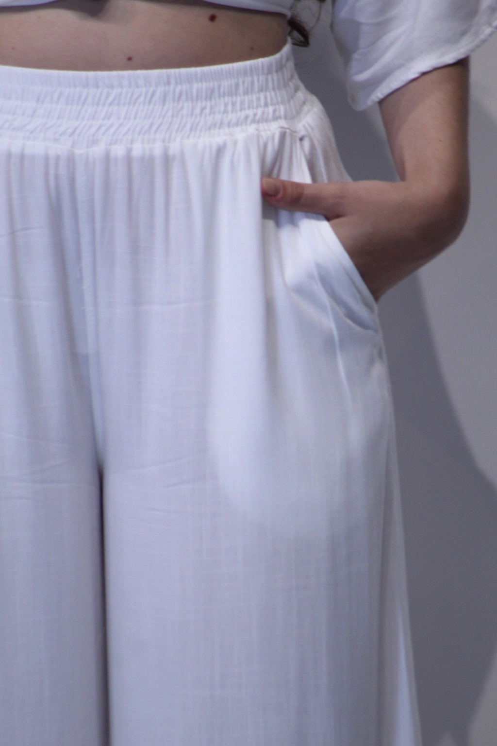 • MODELAGEM PANTALONA BEM LARGA E FLUIDA EM TECIDO VISCOLINHO (VISCOSE COM UMA GRAMATURA MAIS GROSSA).